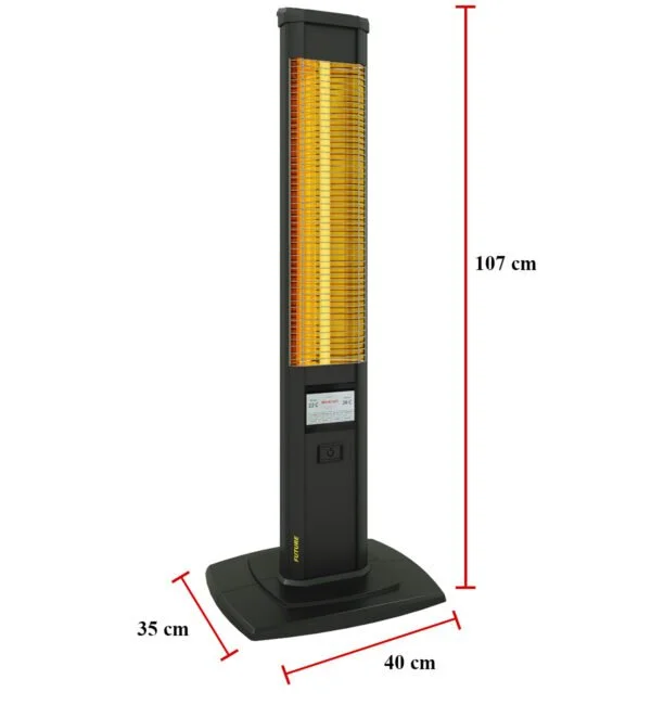 - TIMER AND REMOTE CONTROL: With the remote control of your electric infrared radiant heater you can regulate the ambient temperature between 600 – 1200 – 1800 – 2200 W. Thanks to the timer of the infrared radiant heater outdoor, the automatic switch-off can be between 1 and 8 hours.